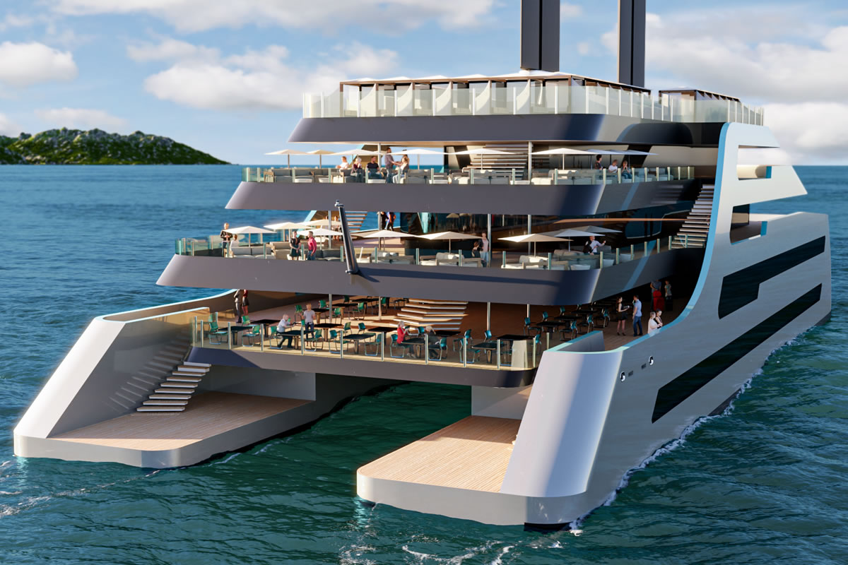 The Albatross superyacht concept was designed by Lloyd Werft in collaboration with Stay Sea Design. This Epic 410-Footer (125m), christened ALBATROSS, Hybrid Catamaran Concept uses wing-like sails to harness the wind.