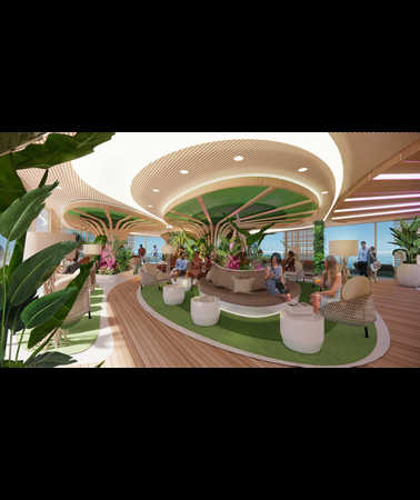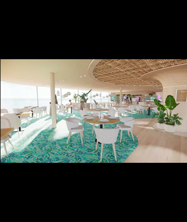 Our eco-friendly vessels use wing sail propulsion called Oceanwings® capable of creating forward thrust of 10-15knts, which is sufficient for daily cruising without the need for turning on main engines. Each ship will have alternative propulsion from Pod Propeller Systems along with Dynamic Positioning Systems eliminating the need for coral destroying anchors. L'esprit yachts will utilize the top deck as a sun platform for cabanas, a full service bar, and pool.